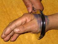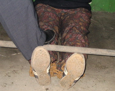 他说,当他不在血汗工厂劳动时,他就受到酷刑折磨。有一次,警察将他绑在椅子上电击了几个小时。一天夜晚,他被绑在床上,手臂变得黑肿。