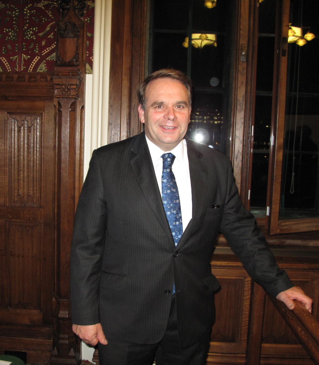 英国保守党国会议员尼尔•帕里士主持在英国议会大厦举办的关于中共活摘法轮功学员器官说明会