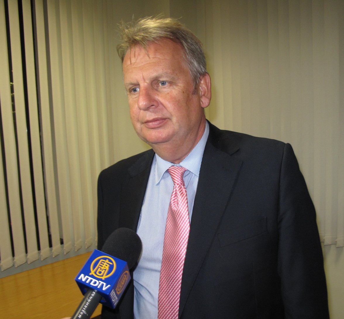 ![]() 威尔士议会议员儒德瑞•格林•托马斯“中共活摘法轮功学员器官罪行说明会”并接受记者采访 |