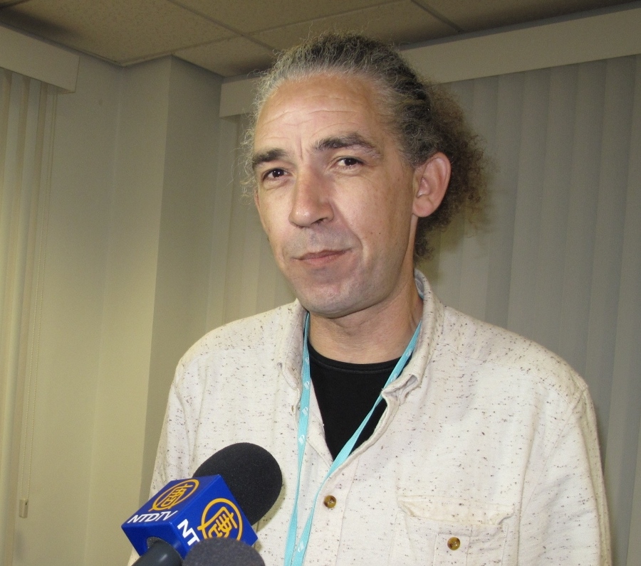 ![]() 卡迪夫电台主持人比格•斯科特出席“中共活摘法轮功学员器官罪行说明会”并接受记者采访 |