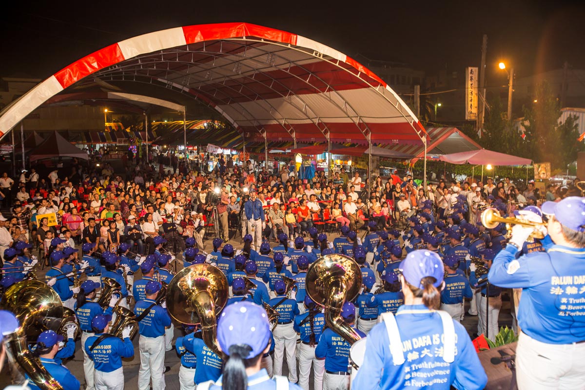 法轮大法天国乐团连续八年应邀参加“虱目鱼文化节”开幕表演,吸引人潮涌入,给社区带来繁荣与美好。