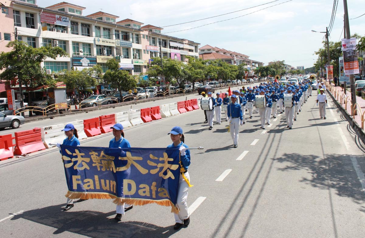当天下午二时许,天国乐团来到槟城北海举行游行,在警方和志愿警卫团(RELA)协助开路下走了约一个半小时的路程,途经北海主要大街,包括当地最繁华,也是华人集中区的拉惹乌达大街(Jalan Raja Uda)。学员一路派发资料,让民众了解真相。
