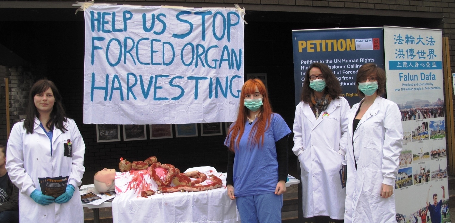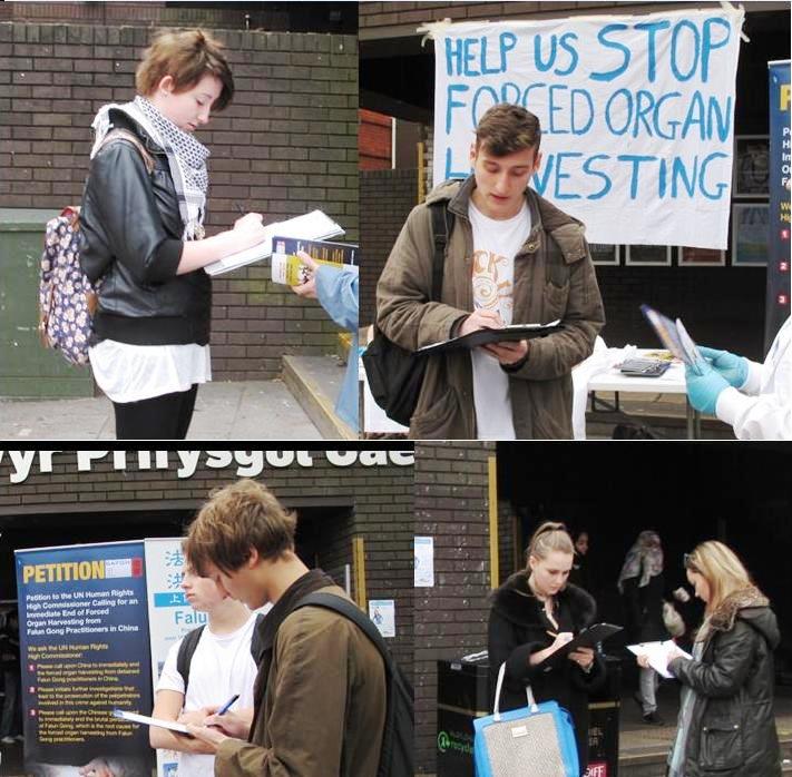 这是大赦国际组织卡迪夫大学分部(AI Society Cardiff)成员在进行反强摘器官征签,以实际行动谴责中共大规模活摘法轮功学员器官的暴行。