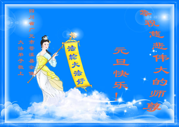 我们感谢法轮功李老师的保佑!衷心祝愿李老师元旦快乐!