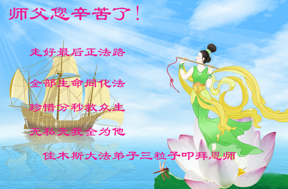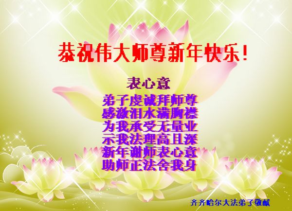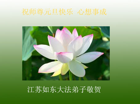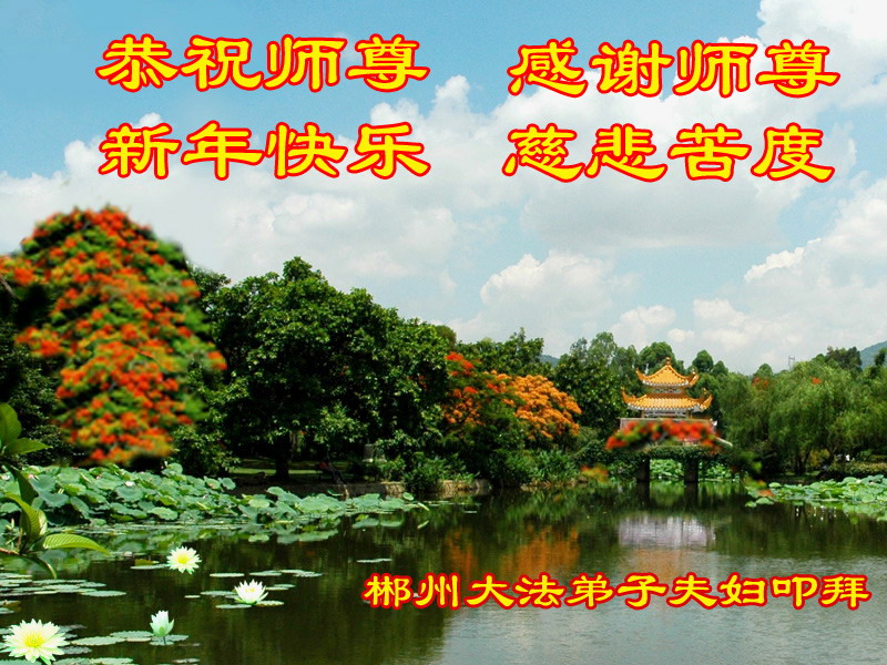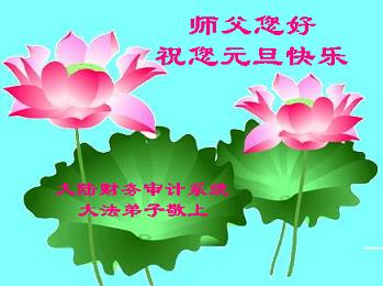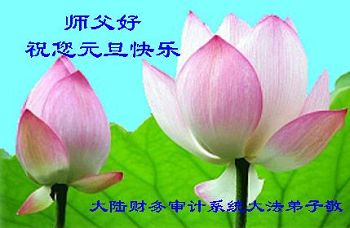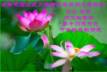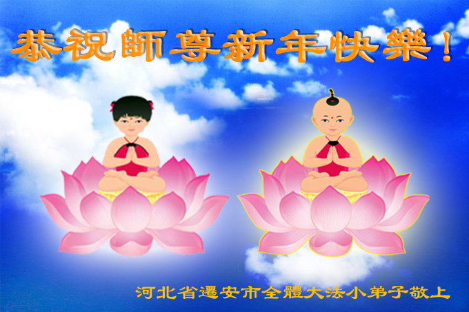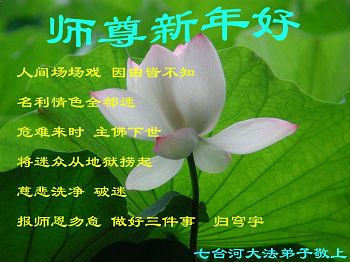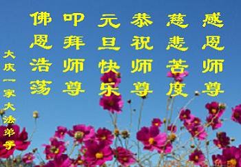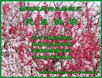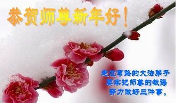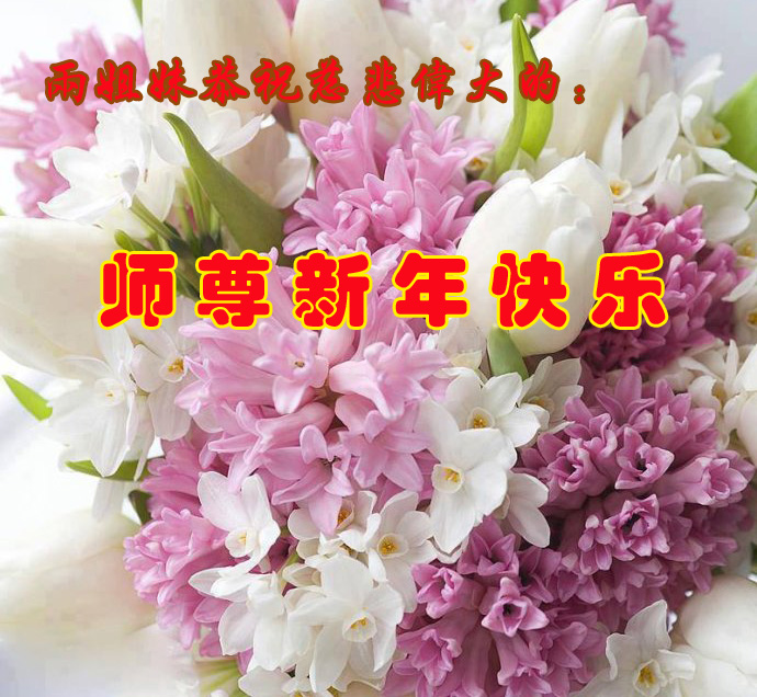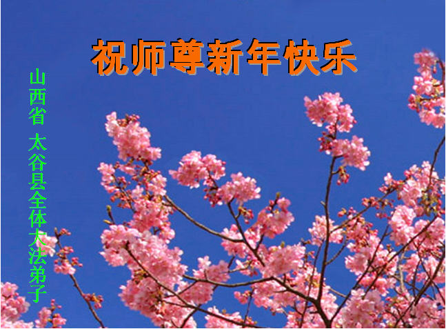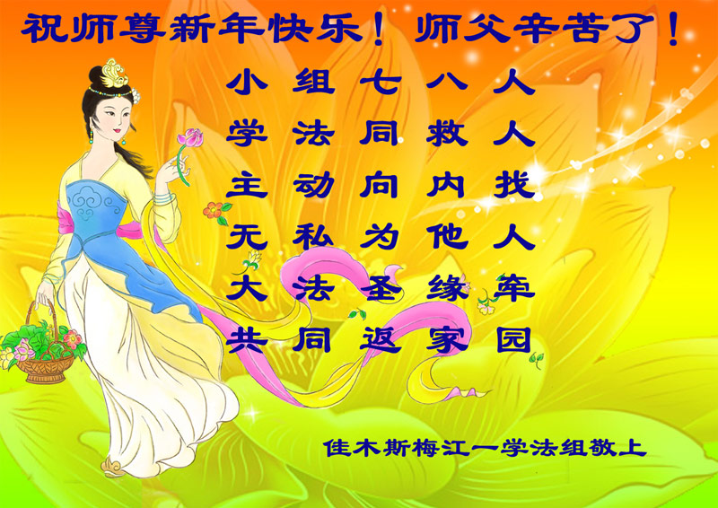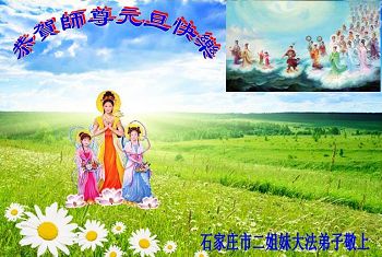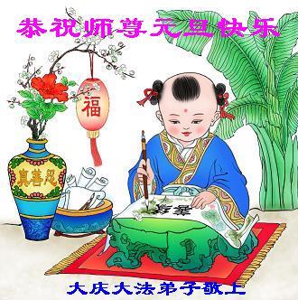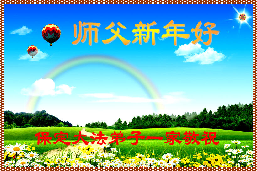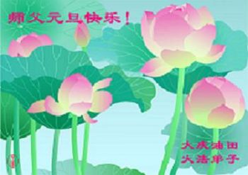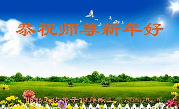 师尊好!时间飞逝,转眼進入新的一年,我们非常想念师尊!祝师尊新年快乐!能成为大法弟子,我们感到非常荣耀和幸福,我们不忘自己的使命,每天讲真相救众生,努力做好三件事。彼此沟通、互相配合、共同精進,圆满随师还。