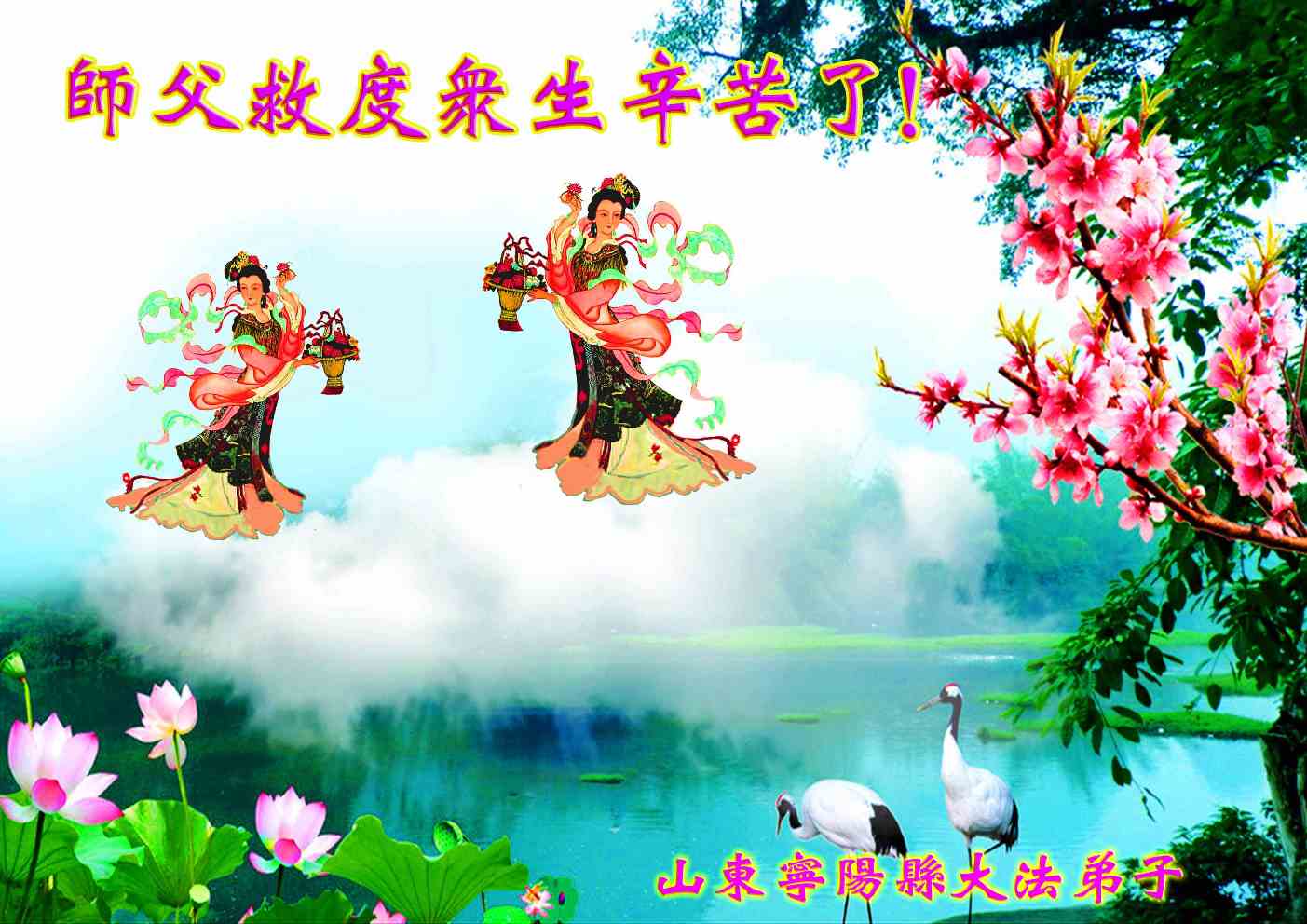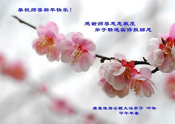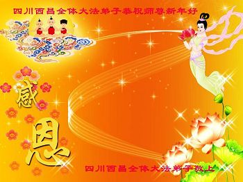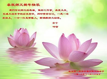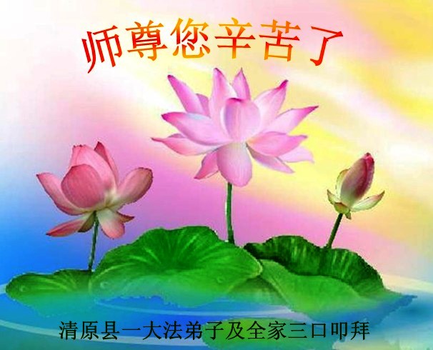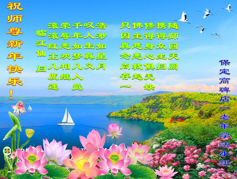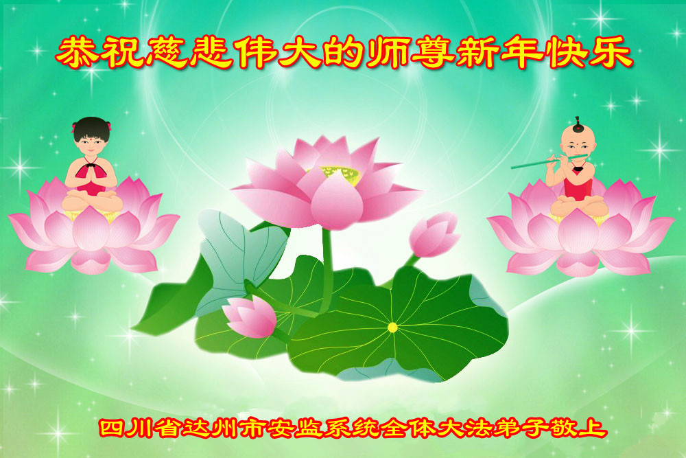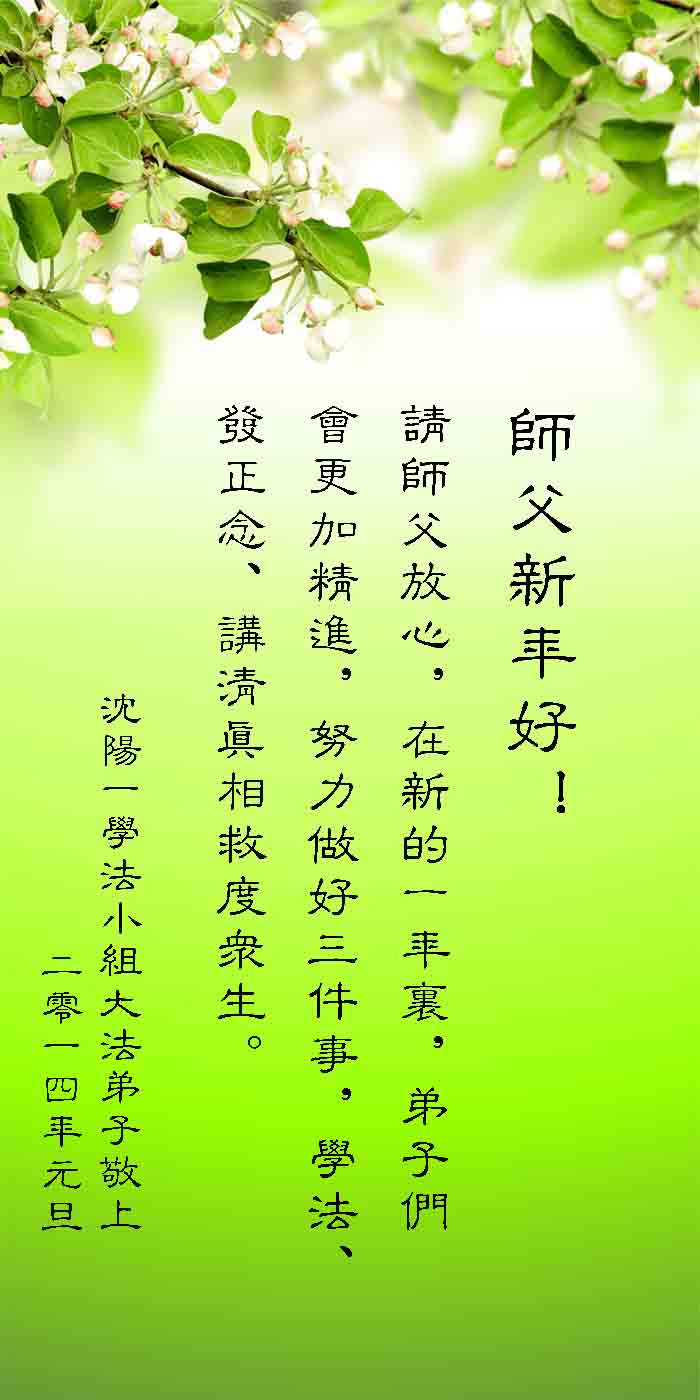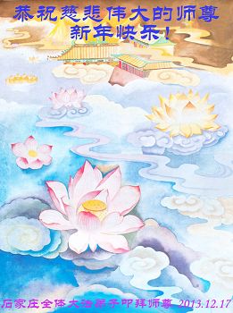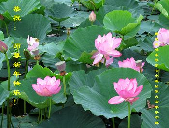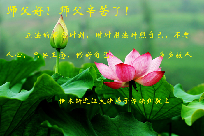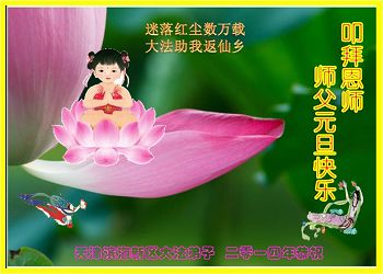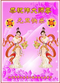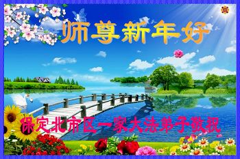 师尊好!时间飞逝,转眼進入新的一年,我们非常想念师尊!祝师尊新年快乐!能成为大法弟子,我们感到非常荣耀和幸福,我们不忘自己的使命,每天讲真相救众生,努力做好三件事。彼此沟通、互相配合、共同精進,圆满随师还。