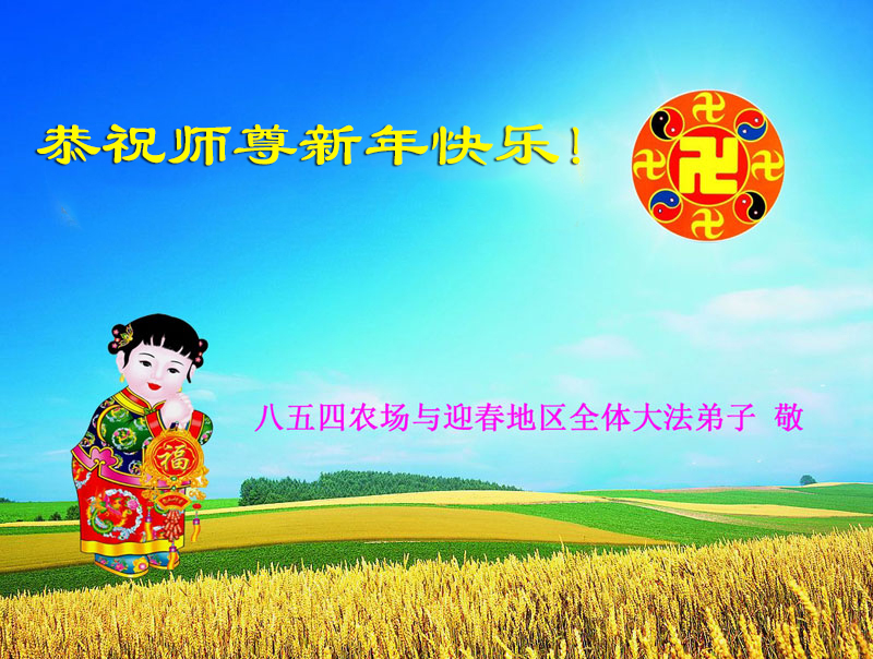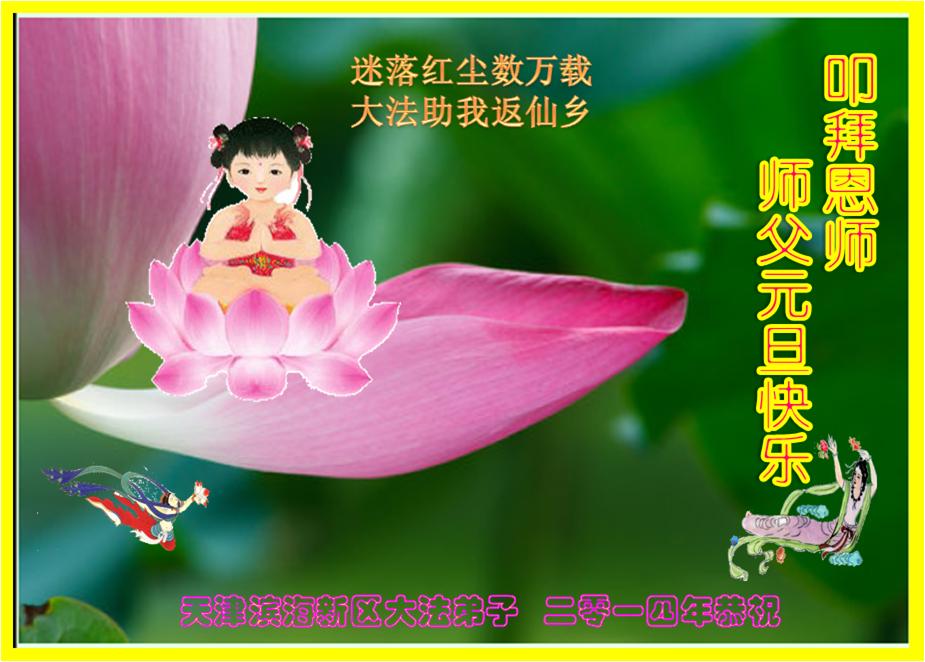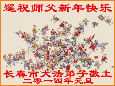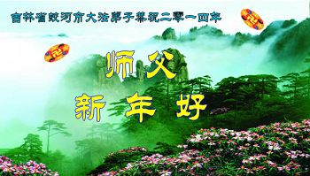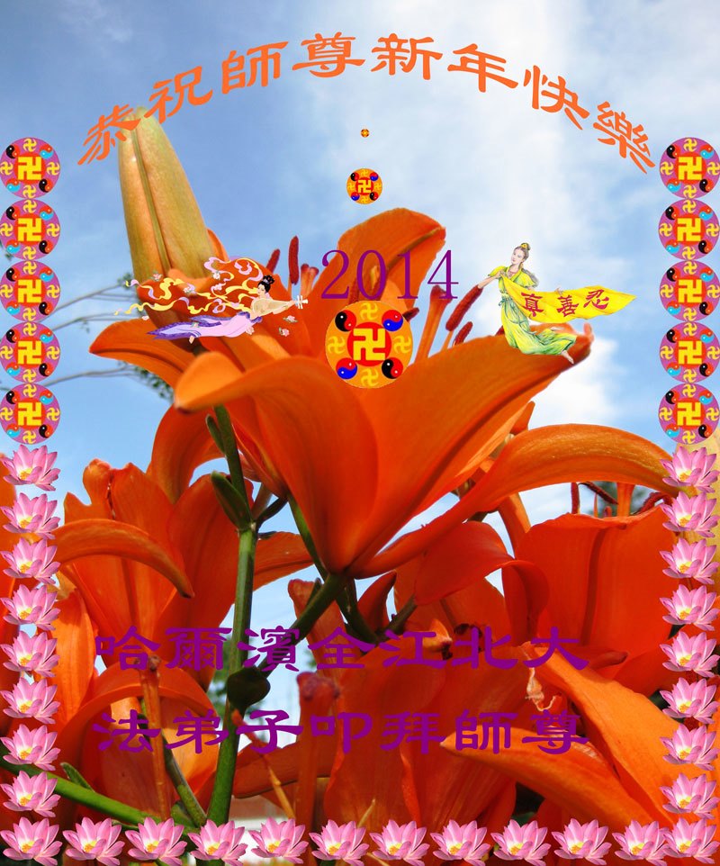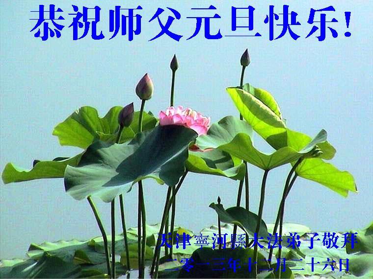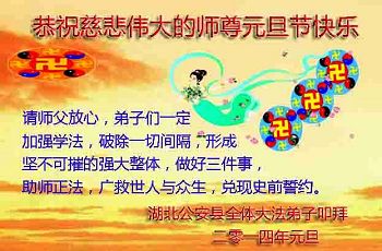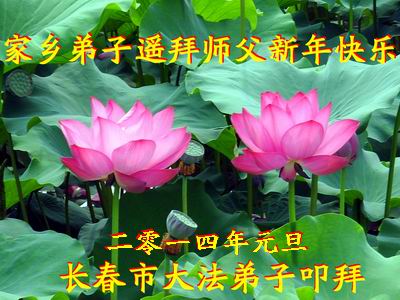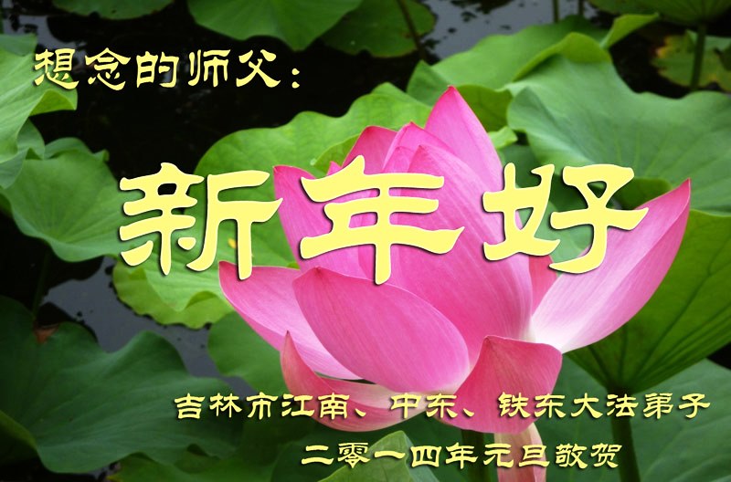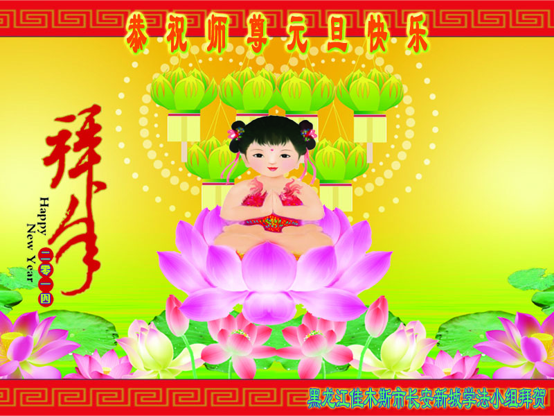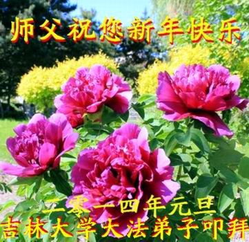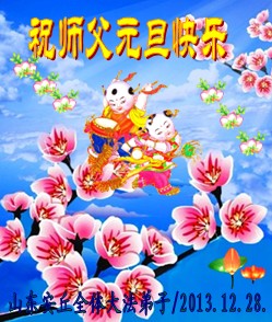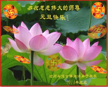 大庆东风新村一区、八区、第八采油厂全体大法弟子向伟大的师尊拜年,祝师父2014年元旦快乐!