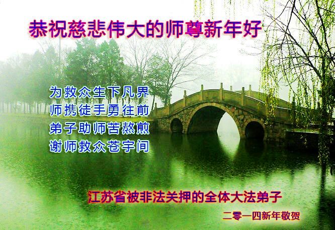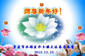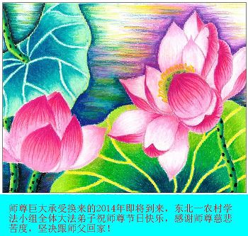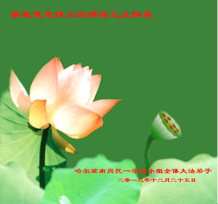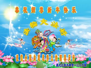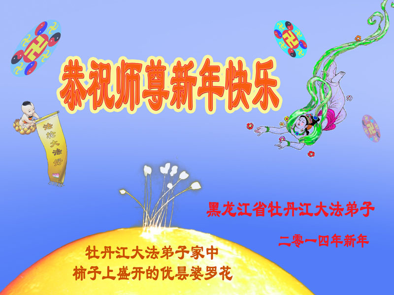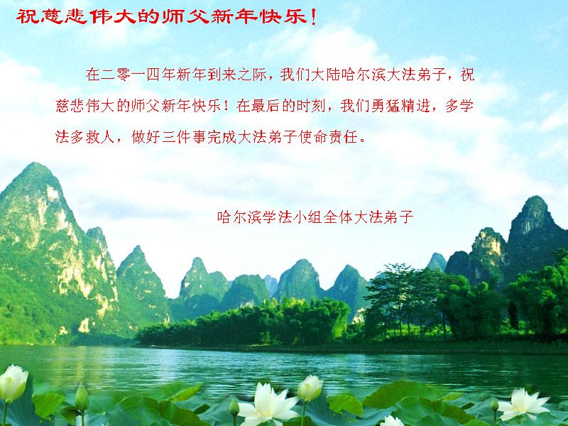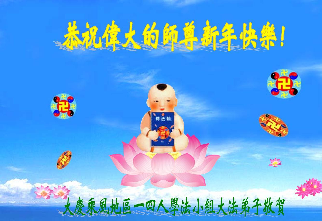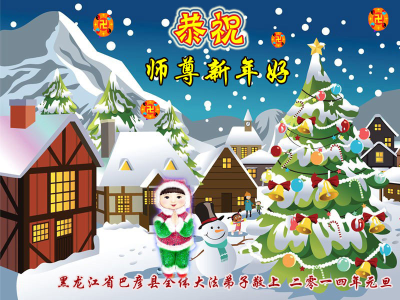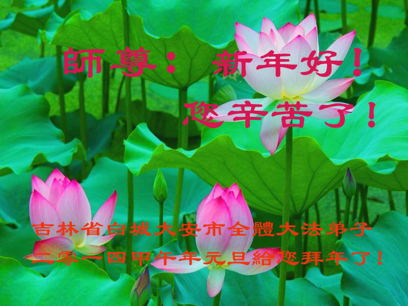 大庆东风新村一区、八区、第八采油厂全体大法弟子向伟大的师尊拜年,祝师父2014年元旦快乐!