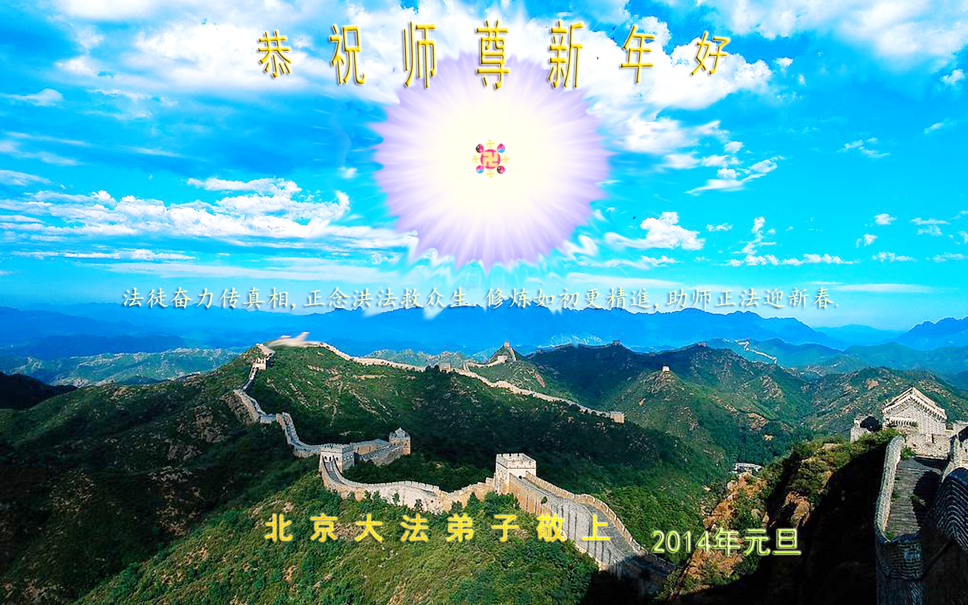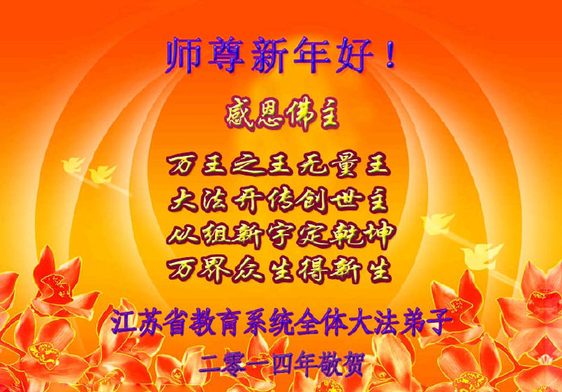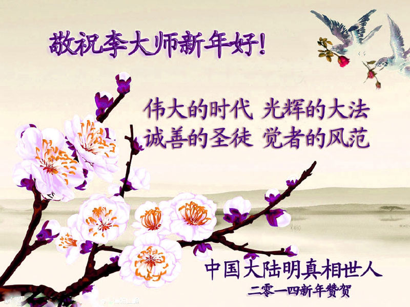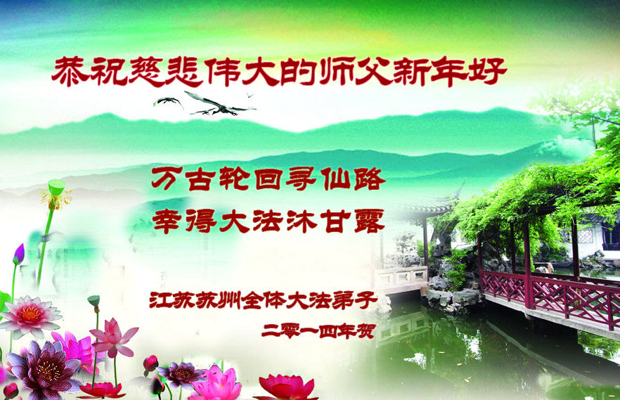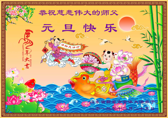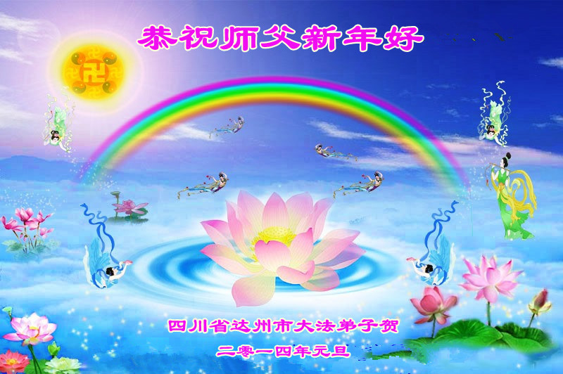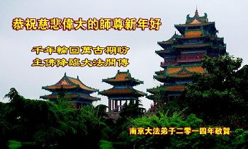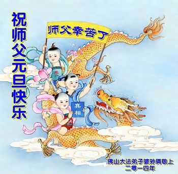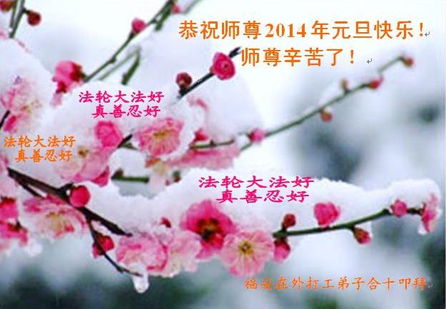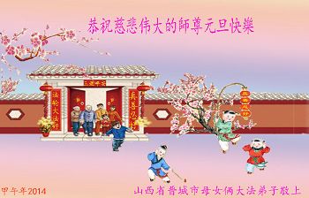 2014年新年到了,在师父的慈悲救度下,人类又走过了一年,邪恶在恐惧中惶惶度日,弟子们一定抓紧时间做好三件事,完成誓约,请师父放心。