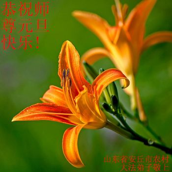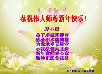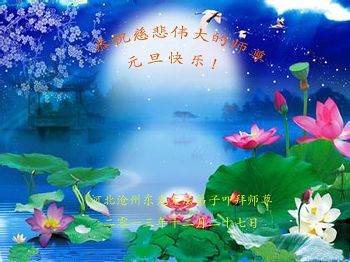 我是焦作地区大法弟子,代表焦作地区的大法弟子们和觉醒世人借此元旦佳节之际,祝贺我们慈悲伟大的师父元旦佳节快乐!