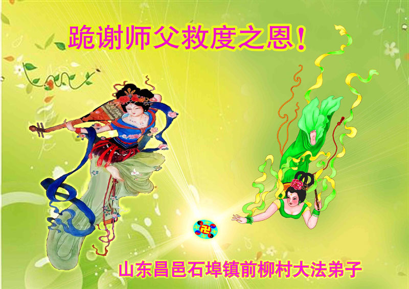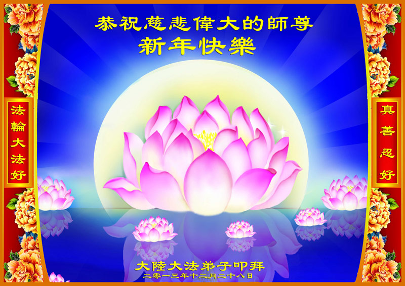 感谢慈悲伟大的李大师救度我们!您为救度世人辛苦了!得救的世人都苦于没有地方向慈悲伟大的李大师表达感激之情,一再叮嘱我们无论如何要将他们心中那份真挚的感恩在新年之际向李大师表达,祝福慈悲伟大的李大师元旦愉快,并盼望着伟大的李大师慈悲于大陆子民,能够回到故国与亲人团聚,我们期盼那一天的到来!明白真相的所有世人无限的感恩李大师!