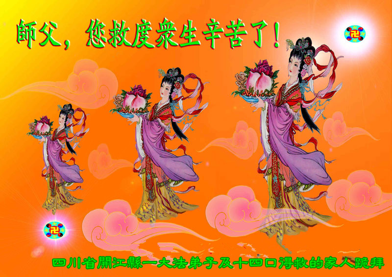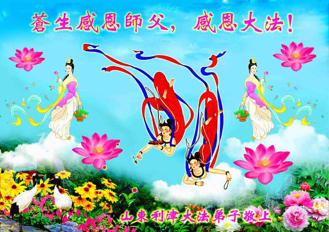 我们代表所有的亲朋好友以及明白大法真相的世人感谢李大师慈悲救度!我们无限的感恩李大师,感恩真善忍宇宙大法!是您无量慈悲让法轮功弟子把我们从噩梦中唤醒。我们在中共邪党的欺骗下,浑浑噩噩的生活了大半生,被邪党洗了脑,没有了正常人的思维,满脑袋的党文化、斗争哲学,是伟大的李大师给了我们重生的希望,让我们有了正统的思想,我们从心里感谢李大师的再造之恩!