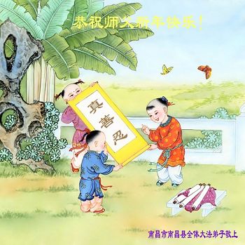 新年伊始,首先叩谢李大师慈悲救度洪恩!我们庆幸自己还能够有如此殊荣向慈悲伟大的李大师献上最诚挚的感恩,曾几何时,由于自己一时糊涂听信了中共邪党的谎言,一度的仇恨着坚持正信的法轮功修炼者,可是事实是不可抗拒的,我们看到身边的每一位法轮功修炼者原来并不象中共邪党宣传的那样,我们亲眼目睹了他们的处事原则,遇事首先为别人着想,兢兢业业的工作,不争不斗的高贵品格,总是把微笑无私的带给对方,在邪党无理迫害下那种大义凛然的壮举令世人敬佩,这哪象中共邪党宣传的那样?这样的好人太难找了!在此奉劝那些与中共邪党还没有划清界限的世人,擦亮自己的眼睛用清醒的头脑来了解法轮功,如此高德大法,如此善良的民众才是人类的希望。
