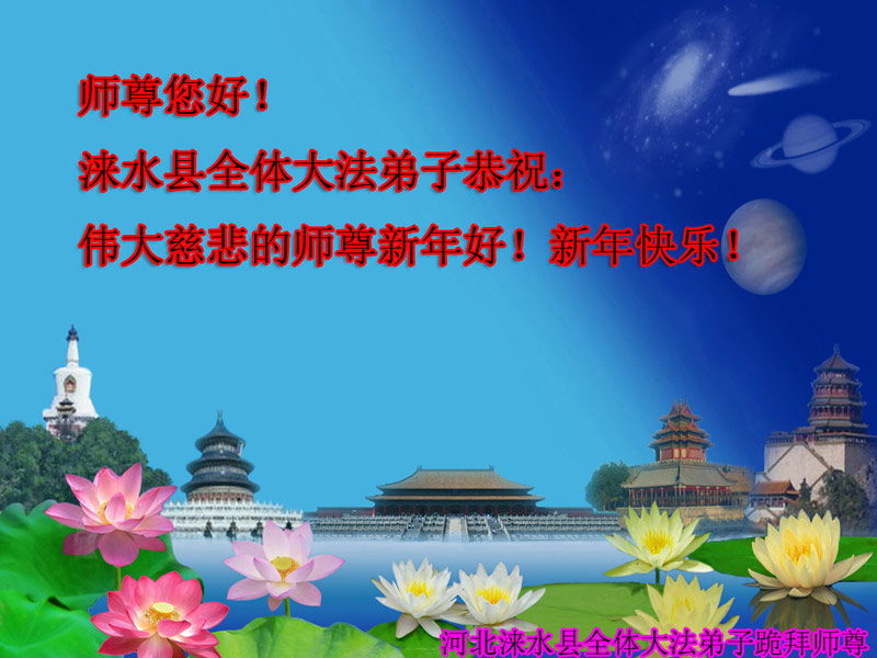 在2014年新年来临之际,我们容城县全体大法弟子以及明白真相的世人恭祝慈悲伟大的师尊元旦快乐!