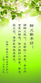 在新的一年里,弟子一定更加努力做好三件事,不辜负师父的希望,做一名合格的大法弟子!