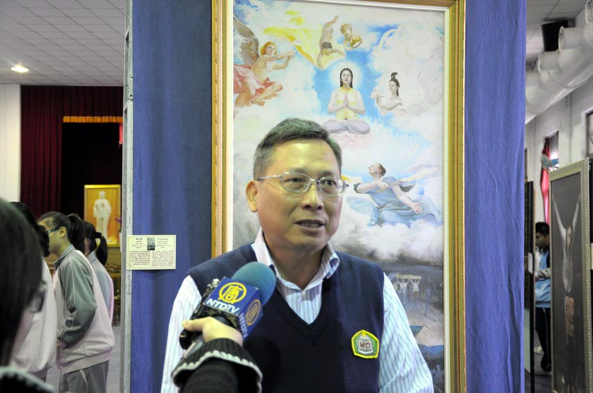 ![]() 教务主任蔡忠和觉得学校办理真善忍美展非常有意义 |