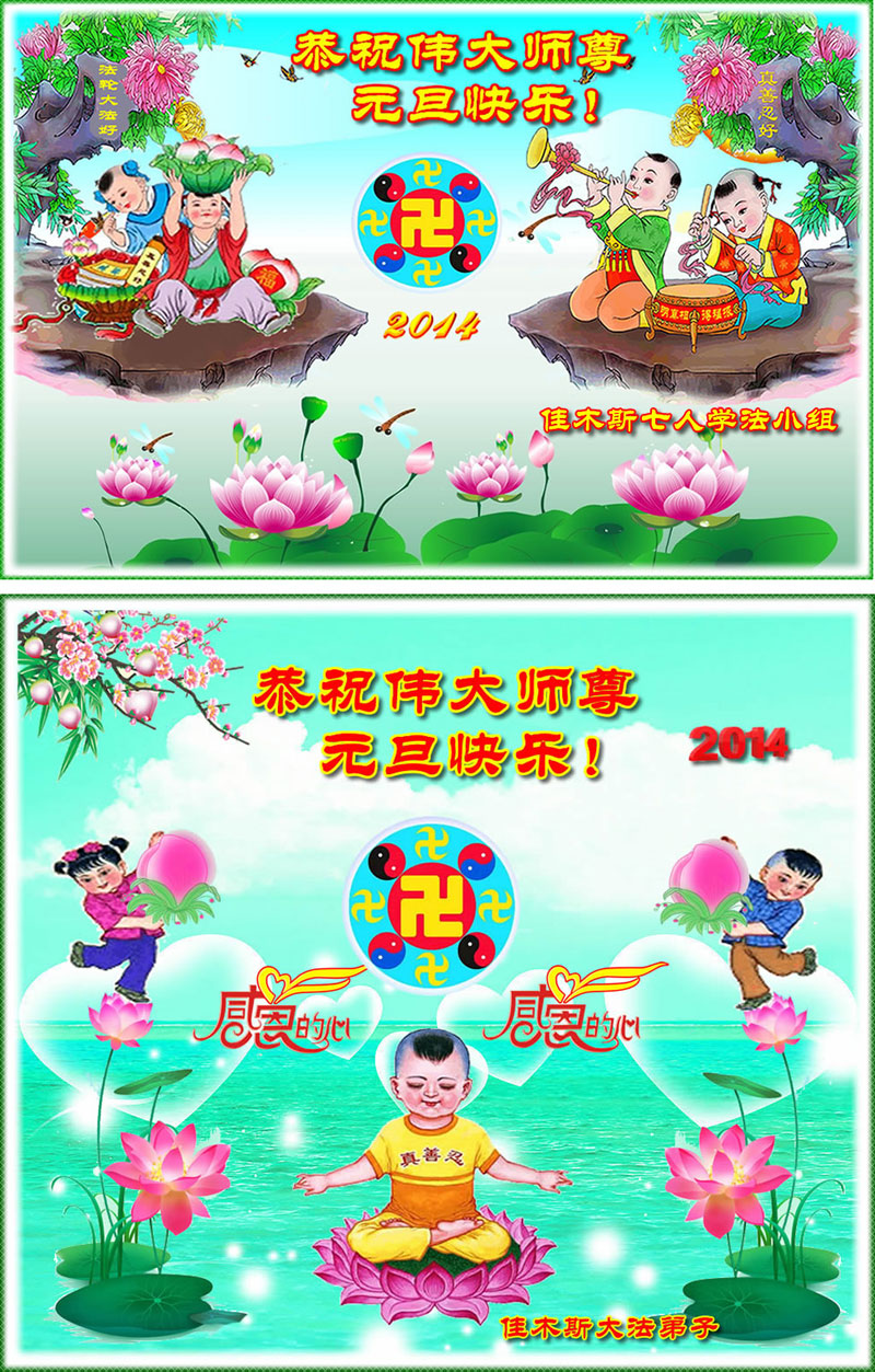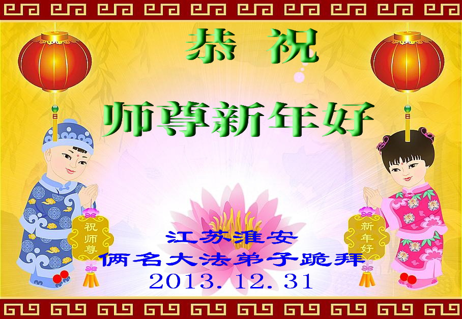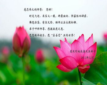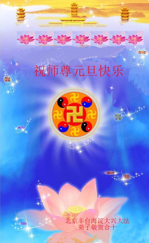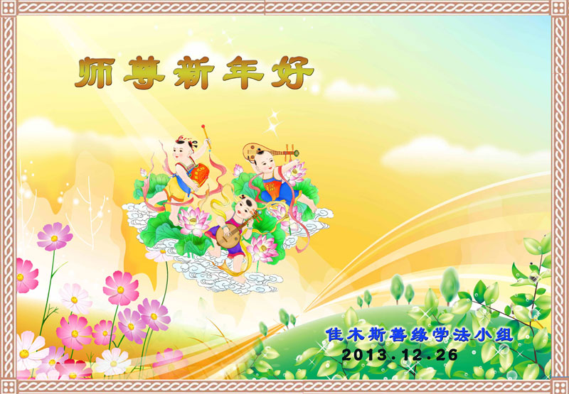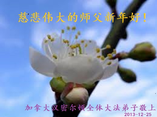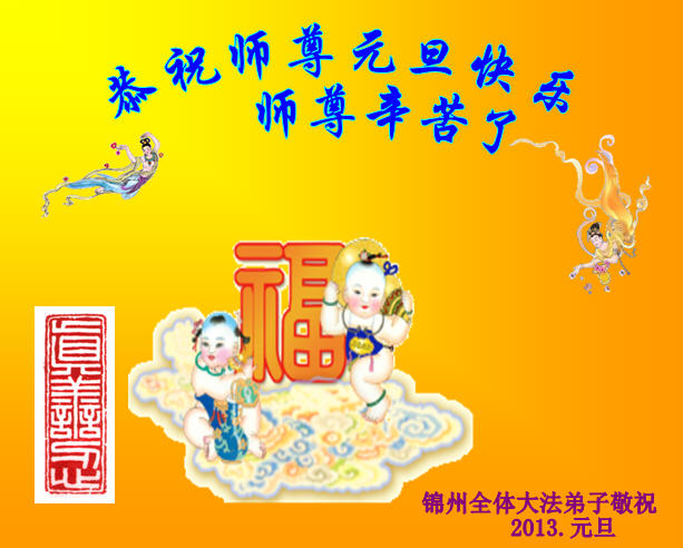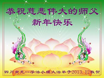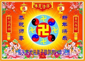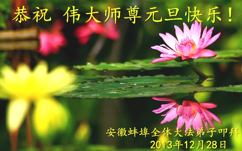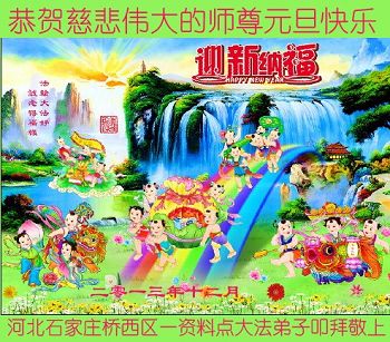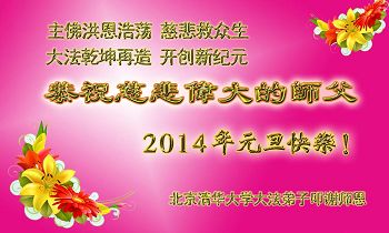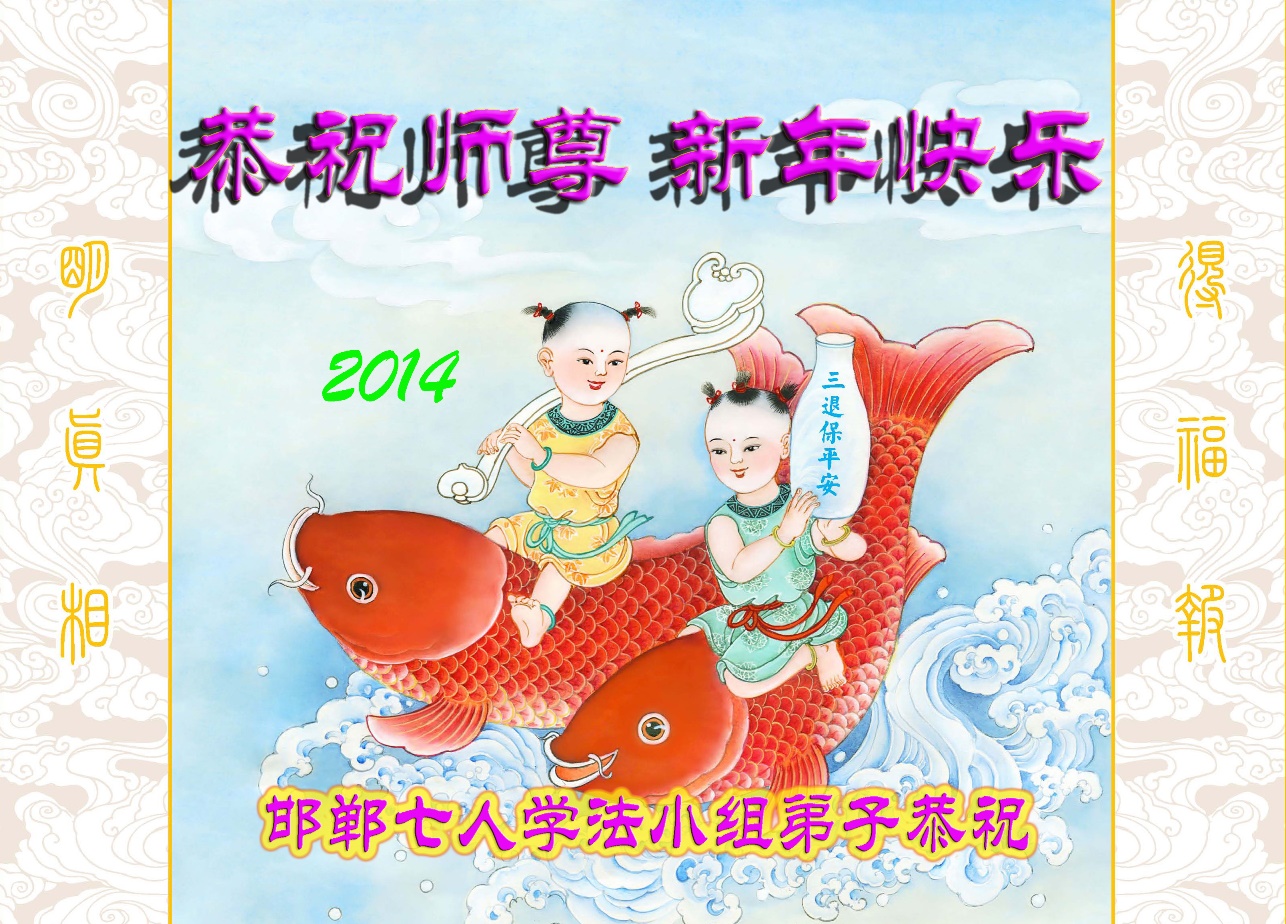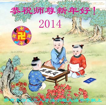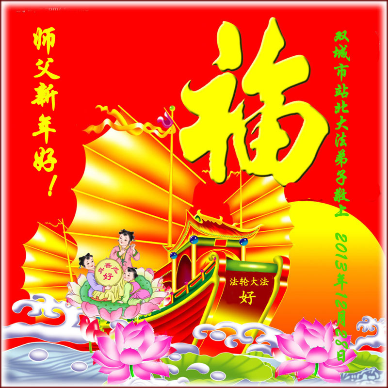 恭贺师尊二零一四年正法一帆风顺!感谢师尊救度之恩,我们一定紧跟正法進程,抓紧讲清真相,反迫害,除邪魔,开创出崭新的天地。 中国人民防空系统大法弟子 二零一三年十二月二十四日