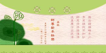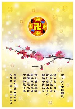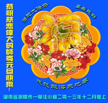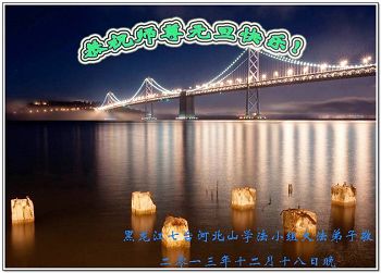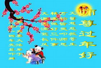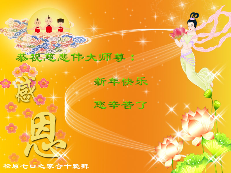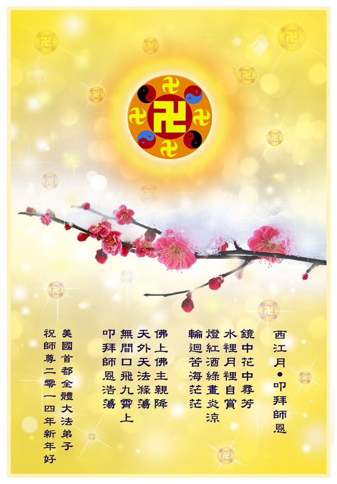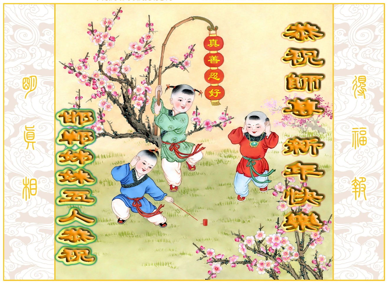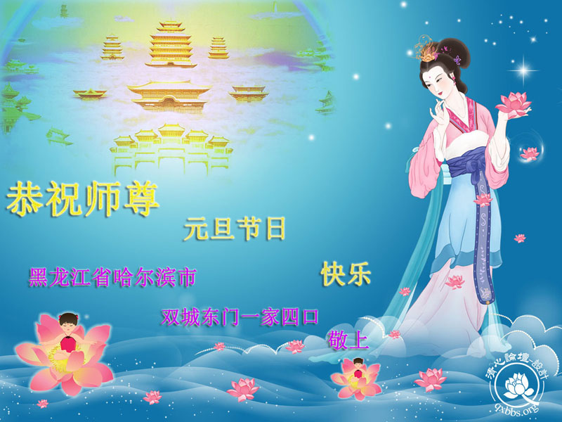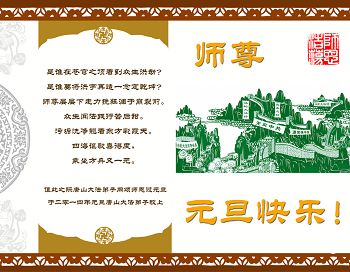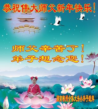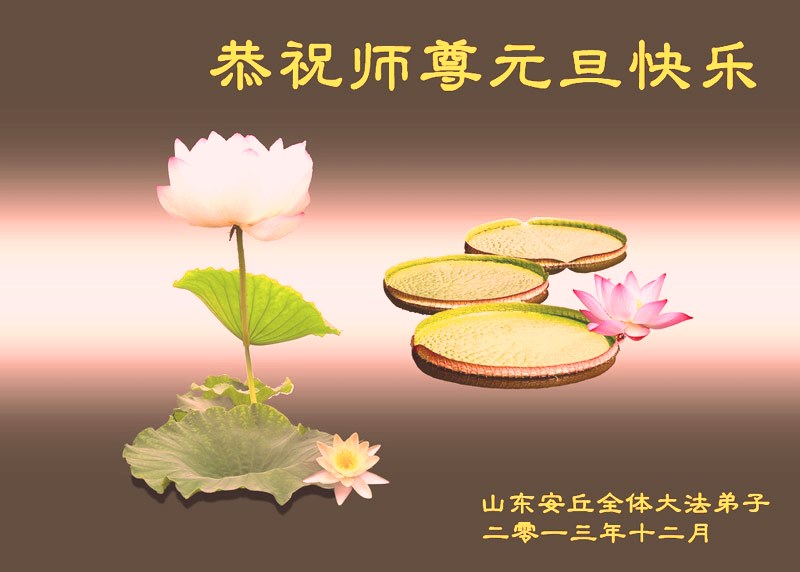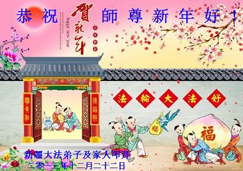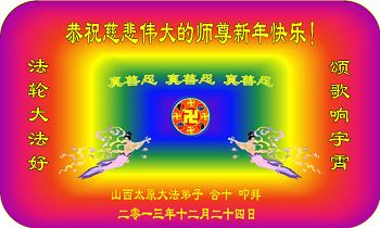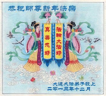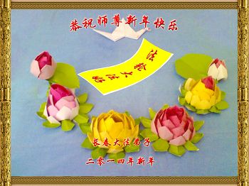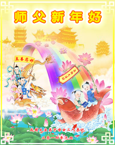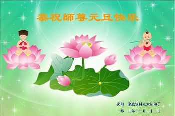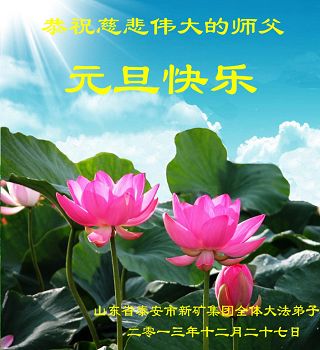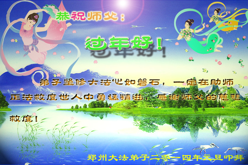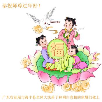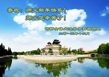 恭贺师尊二零一四年正法一帆风顺!感谢师尊救度之恩,我们一定紧跟正法進程,抓紧讲清真相,反迫害,除邪魔,开创出崭新的天地。 中国人民防空系统大法弟子 二零一三年十二月二十四日