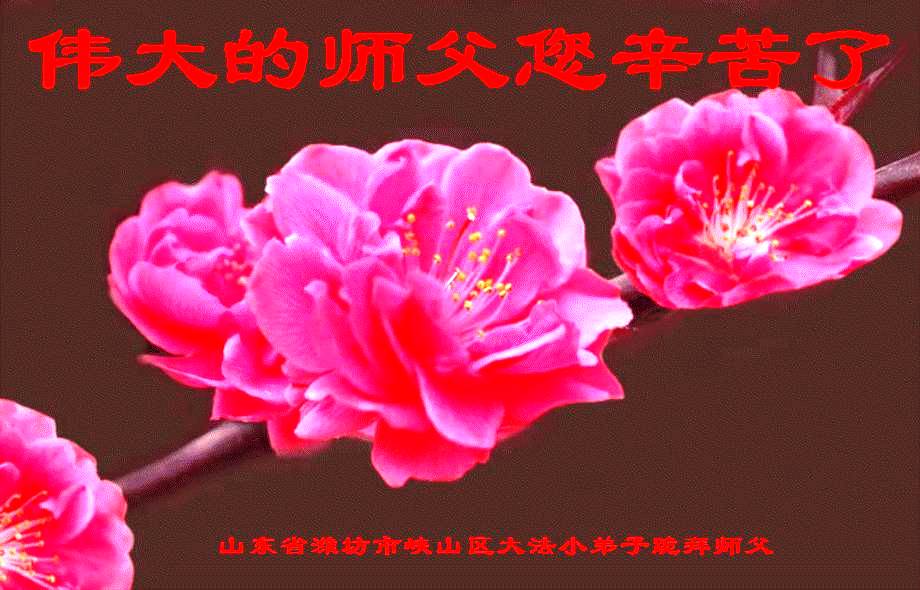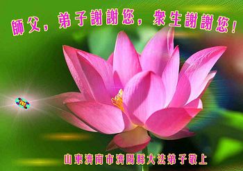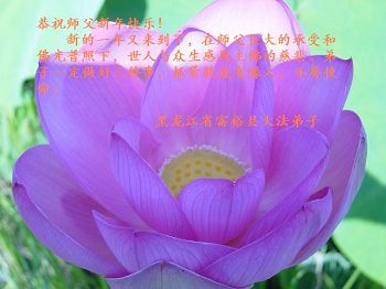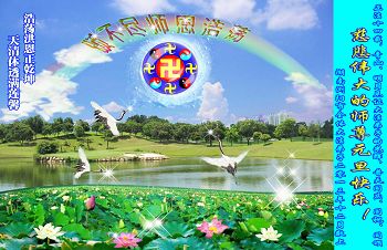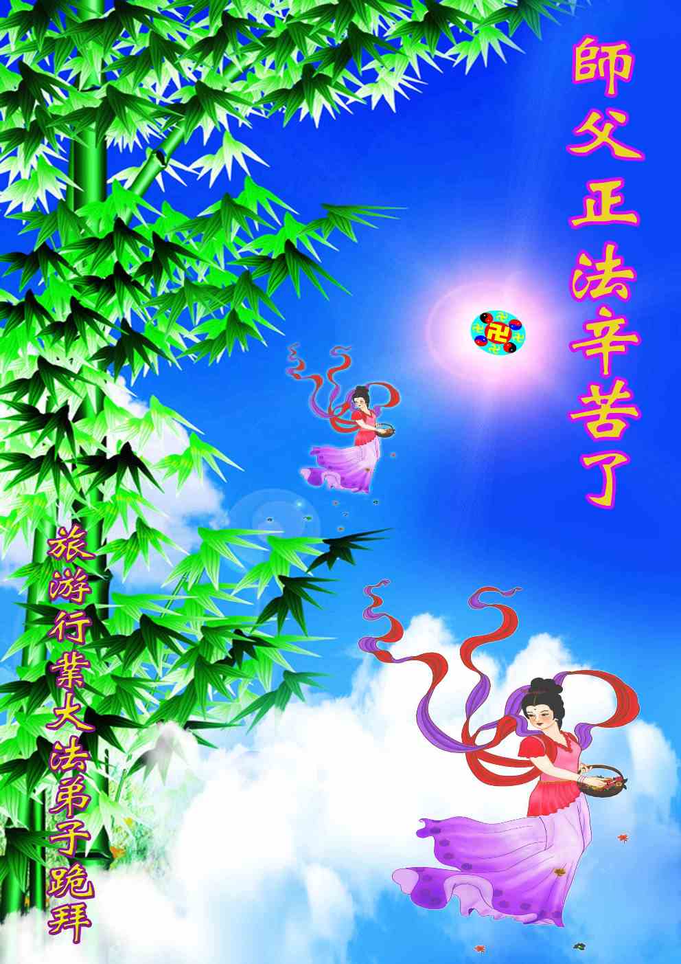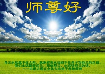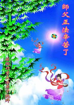 慈悲伟大的师父啊,您把我们从地狱中捞出来,在大法中洗净,您为我们操尽了心,为我们承受了巨大的苦难。您为我们的付出,我们甚至都不知道,也感受不到,但在中国大陆如此险恶中能走到今天,我们内心中都知道师尊的承受和付出。我们用尽人间的语言也无法表达对师尊的感激,用什么也无法报答师尊的救度之恩。在这正法走到最后的阶段,我们唯有按照师尊的教导和要求,找回并保持修炼如初,学好法,做好三件事,在大劫到来之前尽量多救人,多救众生,兑现史前大愿,随师回家园。