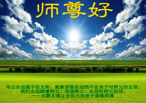 弟子感恩慈悲伟大的恩师!伟大的恩师,您辛苦了!您为了救度宇宙众生付出了一切心血,承担了一切巨难,您为了救度弟子操尽了心,吃尽了苦!弟子唯一能做到的就是遵照师尊的教导,用大法严格的衡量自己的一言一行,发正念除尽邪恶因素与共产邪灵,多救度世人,少让师尊操劳,做师尊合格的大法徒,毫无遗憾的兑现誓约,履行责任,跟师尊圆满的回家。跪拜恩师!合十!