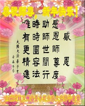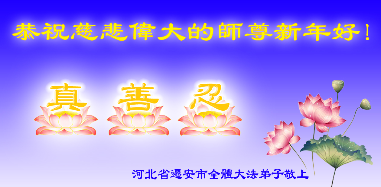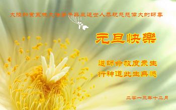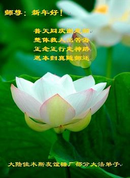 在新的一年里,我们一定倍加珍惜师尊为我们大法弟子及众生延续来的时间。一定在做好三件事中不断精進修好自己,互相配合,利用各自的条件救度更多的众生,完成自己的使命,决不辜负师尊的殷切希望,紧随师父走好最后的路。