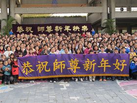 台湾中区大法弟子恭祝师尊新年快乐台湾中区五县市大法弟子经过三天二夜的集体学法交流后,全体学员向伟大的师尊拜年,“恭祝师尊新年快乐”。
