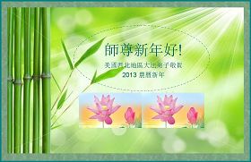 山东卫生系统大法弟子给师父拜年!师父过年好!千言万语诉不尽师恩浩荡!二零一三年黄历新年林业系统大法弟子恭祝师尊新年好!流离在外的方正林业局大法弟子夫妻二人恭祝师尊新年快乐!迎春林业局全体大法弟子恭祝师尊新年好!黑龙江省沾河林业局大法弟子学法小组恭祝师尊新年好!黑龙江农垦大法弟子恭祝慈悲伟大师尊新年快乐!感谢师尊慈悲苦度,弟子会努力做好三件事,向内找,真修实修,弥补过错,跪拜向师尊请罪,放下一切人心,走师尊安排的路。