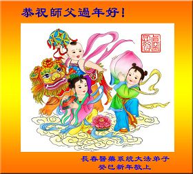 吉林省长春医药系统大法弟子恭祝师父过年好!吉林省长春外资企业大法弟子恭祝师父新年好!辽河油田大法弟子恭祝师尊过年好!吉林省延边州林业系统大法弟子恭贺伟大慈悲师父过年好!黑龙江省佳木斯铁路地区大法弟子恭贺师父新年快乐!尊敬的师父您好!师父辛苦了!感恩师尊洪传“法轮大法”,赐给人类的光明和希望,“谢主佛真善忍”光照寰宇。