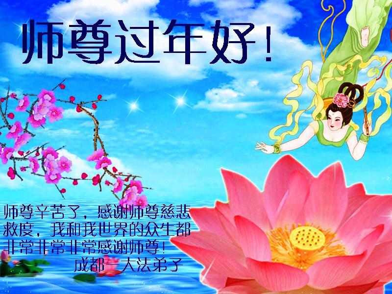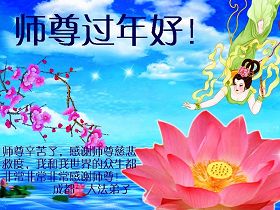 慈悲伟大的师父新年好!新的一年里,弟子将谨遵师父教诲,倍加珍惜正法洪势中的分分秒秒、点点滴滴,坚持不懈深入做好三件事,注重整体配合,随时解体种种人心,让更多世人尽快明真相,得天法,感悟浩荡佛恩。祈愿师尊少一份操劳,多一份欣慰!