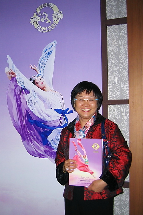 在韩国教授民族舞、中国舞,已从韩国回台定居的韩侨周鸿兰女士偕同女儿一起观赏神韵演出。穿着优雅、笑容婉约的周鸿兰,在网路上看到神韵晚会的演出讯息及国外观众的反馈,决定要一睹神韵的风采。她对神韵晚会赞叹连连,对演员的付出表示感恩。
