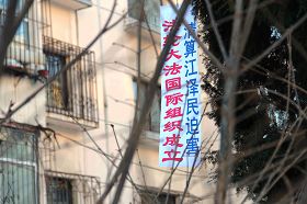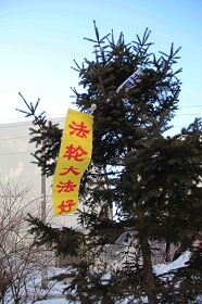 大陆各地庆祝世界法轮大法日的条幅粘贴