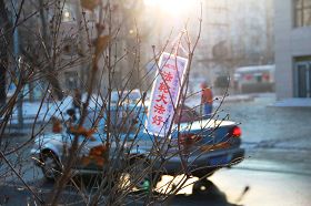 图片报道:黑龙江鸡西市真相条幅迎新年