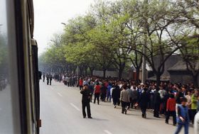 “四·二五”事件,长春去北京有多少法轮功学员,无法统计。当日的火车票是找火车站内部的工作人员买的,一次就是一百张、一百五十张,一个车厢、一个车厢都是法轮功学员。连火车站的工作人员都说:“也不是年,也不是节,又不是学生假期的高峰期,怎么这么多人?都是去北京的。”连飞机场的工作人员都奇怪,到北京的机票一下子非常紧张,包飞机的事很少见。后几天知道消息的外县市的同修还在不断的到北京去,一直持续到“五一”。