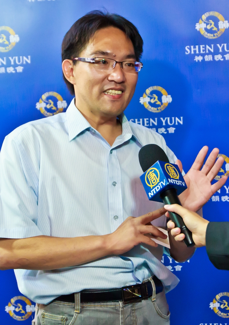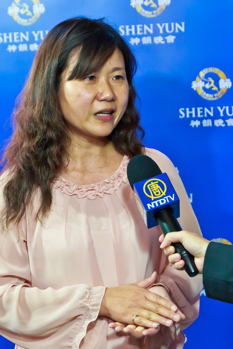 “我好几年前在台中看过神韵,今年又完全不一样。呈现出来的感受跟风格,完全有不同的感受,我想这是神韵不断的在精益求精,不断的进步的地方。从故事性节目来说,表现的手法就不太一样。在舞台上很短的时间里,用动作、肢体语言去呈现所要表达的意境,我觉得非常不简单。”