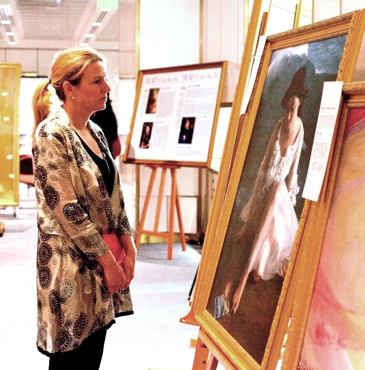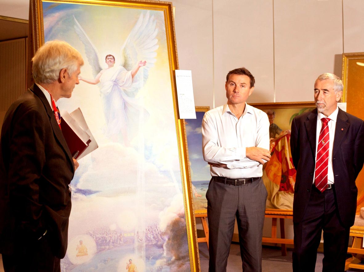 ![]() 澳大利亚国会议员们在听解说员讲解真善忍美展作品 |