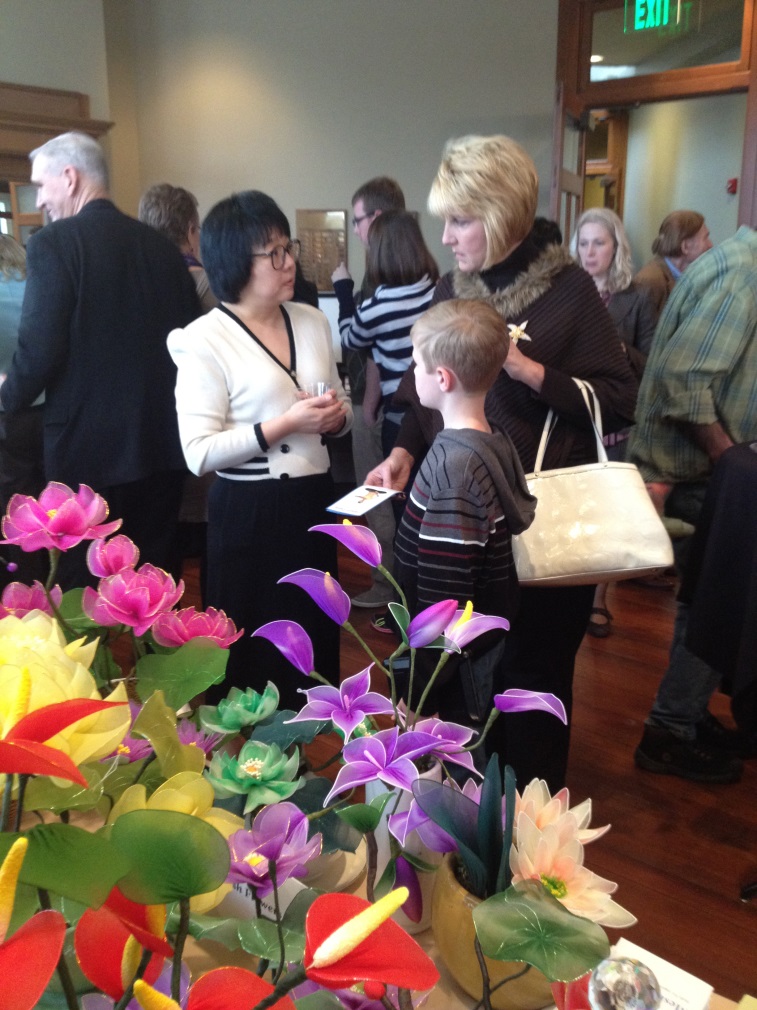 会场的来宾被于女士制作的精美的丝网花所征服,不时发出赞叹。同时对于女士遭中共迫害的经历表示深深的同情,也非常感谢于女士把东方的艺术带到了印第安纳。