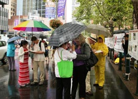 为呼吁澳洲纽省立法制止中共活摘人体器官,二零一三年三月一日悉尼部份法轮功学员冒雨在市政厅大楼前举办征签活动。在此之前,要求制止中共活体摘取法轮功学员器官和到海外进行非法器官贸易、支持纽省立法的拥有上万份签名的请愿书被提交到纽省议会。