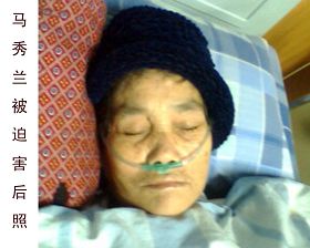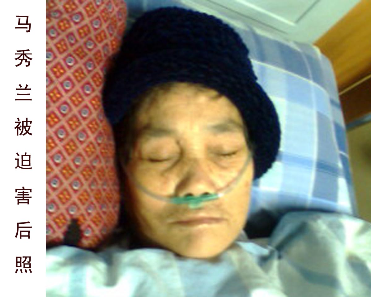 马秀兰,女,六十九岁,二零零八年六月十九日被佛山市叠窖派出所恶警绑架,后被非法关押在南海看守所,遭受了种种毫无人性的折磨摧残,如强制睡水泥地、刑讯逼供、电棍电击,被打得身上多处瘀伤等,二零零九年三月十六日含冤离世。
