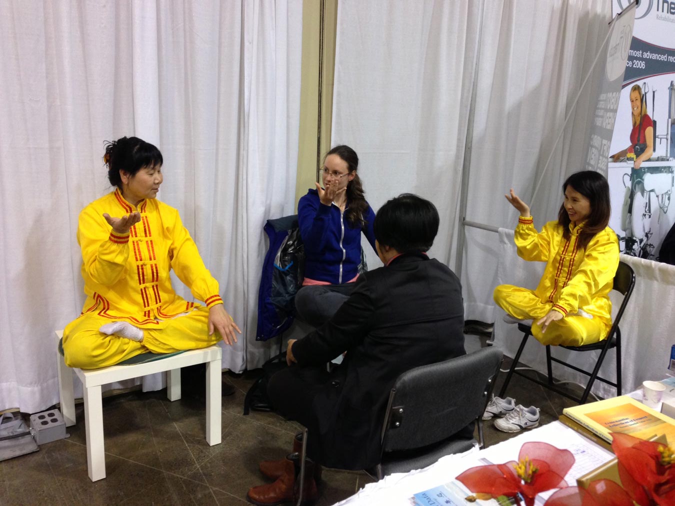 【明慧网二零一三年四月十日】二零一三年四月五日至七日为期三天的全民健康展(Total Health Show)在加拿大多伦多的会展中心(Metro Convention Centre)隆重展开。居住在多伦多的法轮功学员也把祥和美好的法轮功介绍给了大多伦多市的人们,让人身心都受益的法轮功受到人们的欢迎。在柜台前不断地有人询问关于炼功的详细信息、关于气功中的一些不解的问题,有的人现场跟法轮功学员学习炼功动作。有些人了解到中国大陆竟然在残酷地迫害修炼“真、善、忍”的法轮功学员,极其愤慨,表示从内心支持法轮功学员和平抗暴的义举。
