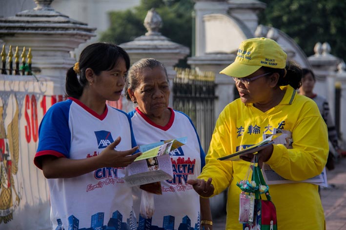 一位从巴马兰(Pemalang)来的新学员说,他曾患严重的糖尿病,仅在修炼法轮功两周后,情况就大有好转。另一位新学员分享了他通过学习《转法轮》和炼功后,如何幸运的在第三次中风中活了下来,刚开始时不能站立,所以炼功只能坐着,现在已经可以站坐自如的炼全五套功法了。