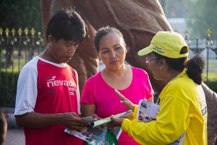 一位来自中爪哇普禾加多(Purwokerto)的新学员分享了在修炼不久后,他的健康有了明显的改善,过去他走路不到一百米就会受不了了,每次都不得不休息一下再走,而现在的他觉得精力充沛、体力大增。他还分享到,作为一个知名的公众人物,他参加过许多社会上的、政治方面的大型团体,但只有在法轮大法学员中,他才发现了这是一块“净土”。