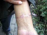 9、法轮功学员柏勇:二零一一年八月十日晚六点多钟,有四个恶人闯进法轮功学员柏勇家中,给她戴上手铐,没让穿鞋,光着一只脚,把她抬上车绑架到洗脑班迫害二十八天,疼痛难忍,九月七日到医院检查是子宫瘤发作,须马上住院手术,手术医疗费花2300多元,无人报销。现在已丧失劳动能力。迫害三十天。