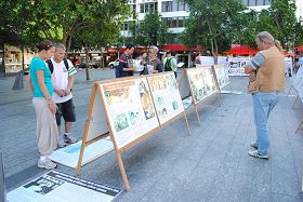 广场上一幅幅中国法轮功学员遭受酷刑虐待和活摘器官的真相图片,震惊了过路行人。当学员向民众讲述近日中国媒体揭露“马三家女子劳教所”迫害法轮功学员的黑幕时,人们一致谴责中共的暴行。