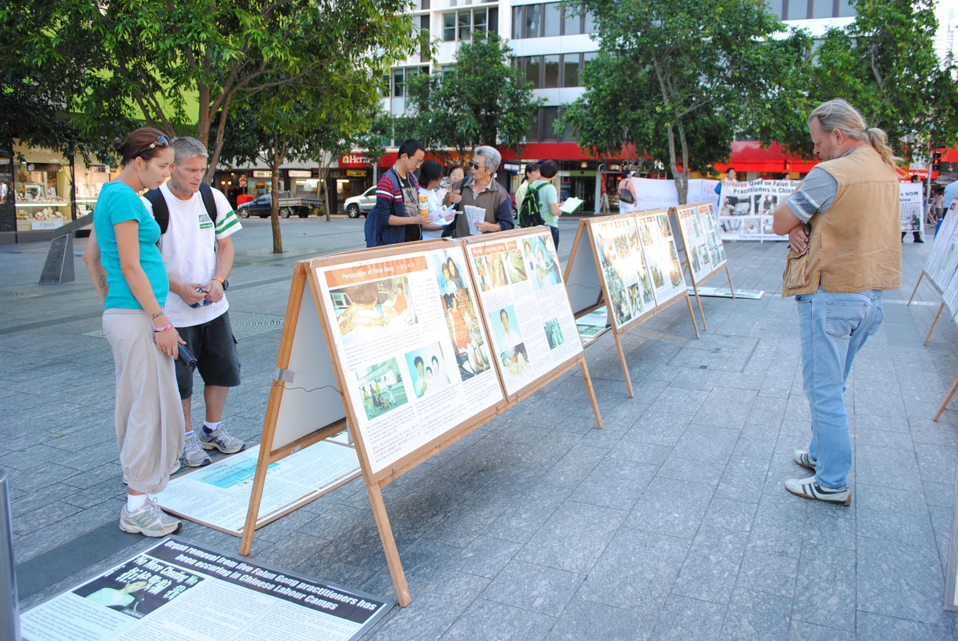 民众观看法轮功真相展板并签名支持反迫害