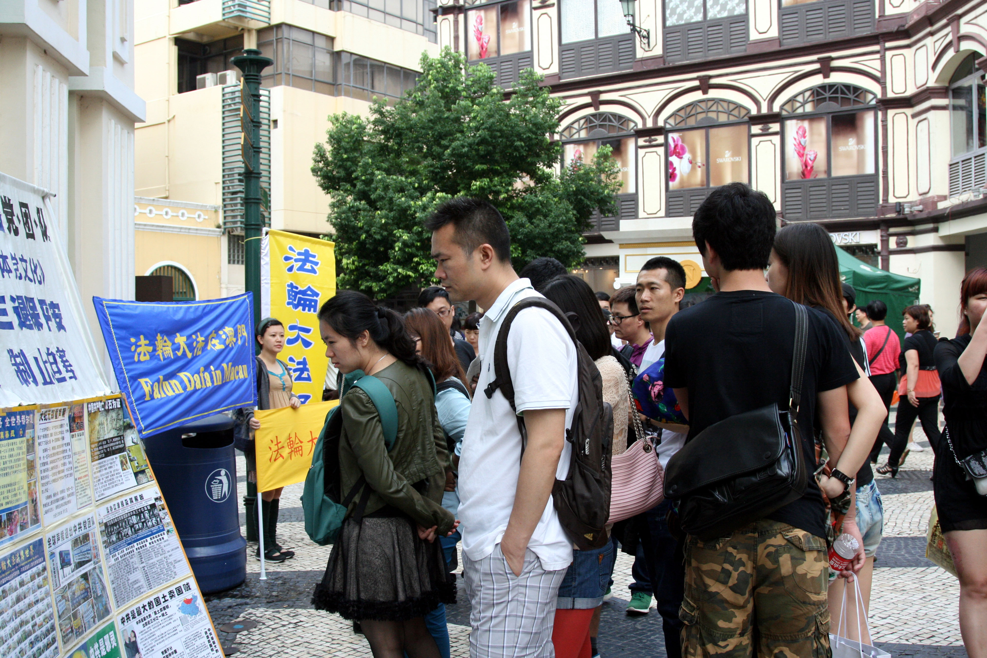 有澳门民众称:“我知道法轮功学员的四‧二五和平上访事件。”学员让他记住“法轮大法好,真、善、忍好”,他回答说:“知道了。”