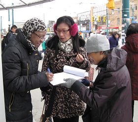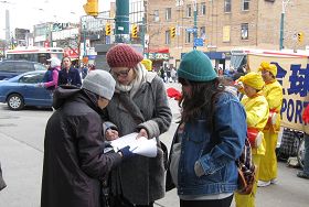 一位来自约克大学的学生签名后,留下了他的联络方式,他说要在大学同班同学中征集制止活摘器官的签名。一位亚裔社区领袖在街头遇到了征集签名的法轮功学员,他不但自己签了名,还告诉过往的加拿大人中国发生了什么,称签名就是制止中共的迫害。
