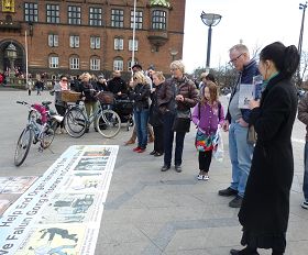 哥本哈根市中心的市政厅广场,是丹麦哥本哈根法轮功学员向世人讲真相的主要地点之一。丹麦的法轮功学员十几年中在这里面对成千上万的行人游客,以及从中国大陆出来旅游的人们,向他们讲述大法的美好,以及这场对善良人最残酷的迫害,特别是越来越被人们认识到的,中共恶党对法轮功学员活体摘除器官的罪恶。面对着年复一年的人来人往,法轮功学员在市中心讲真相,呼吁世人关注中国的迫害罪行已经成为人们熟悉的形象了。许多人早已了解大法真相,表达了他们正义的声音。但是仍然还有很多人没有听到过大法真相,和大法在中国遭受迫害的真相。学员格外珍惜这有限而宝贵的时间,不失时机地向人们传递真相。