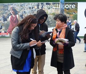 ![]() 人们慎重的签下自己正义的名字,呼吁制止中共罪行 |