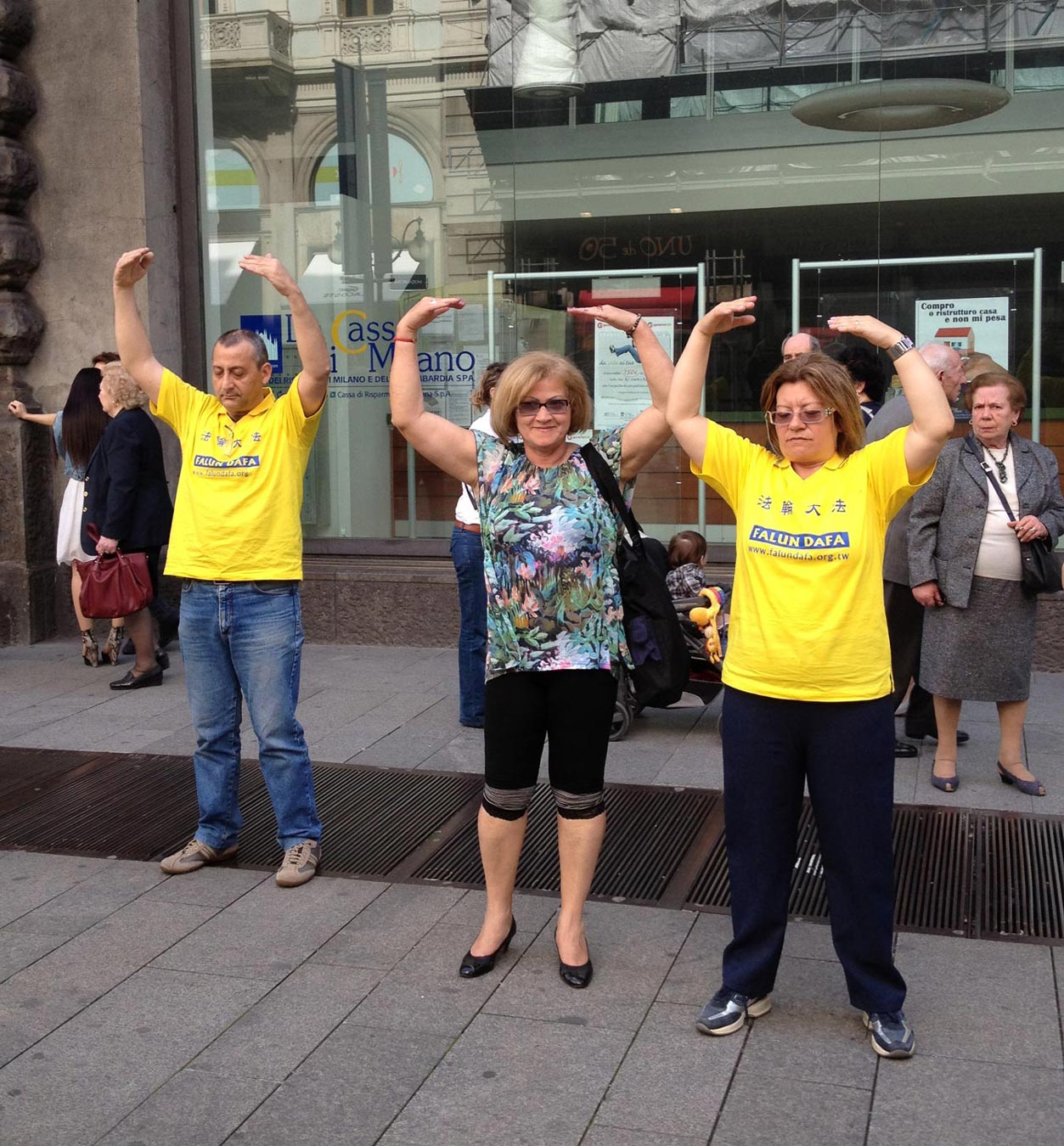 ![]() 意大利法轮功学员纪念“四·二五”,展示功法 |