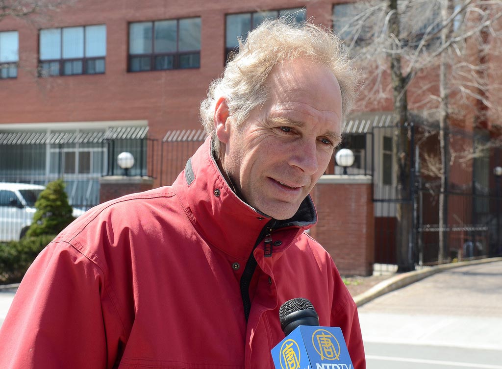 'Steve Engholl是住在中领馆附近的居民区,十几年来他一直都能看到法轮功学员在中领馆前的和平抗议,今天他特意赶来支持这个活动。'